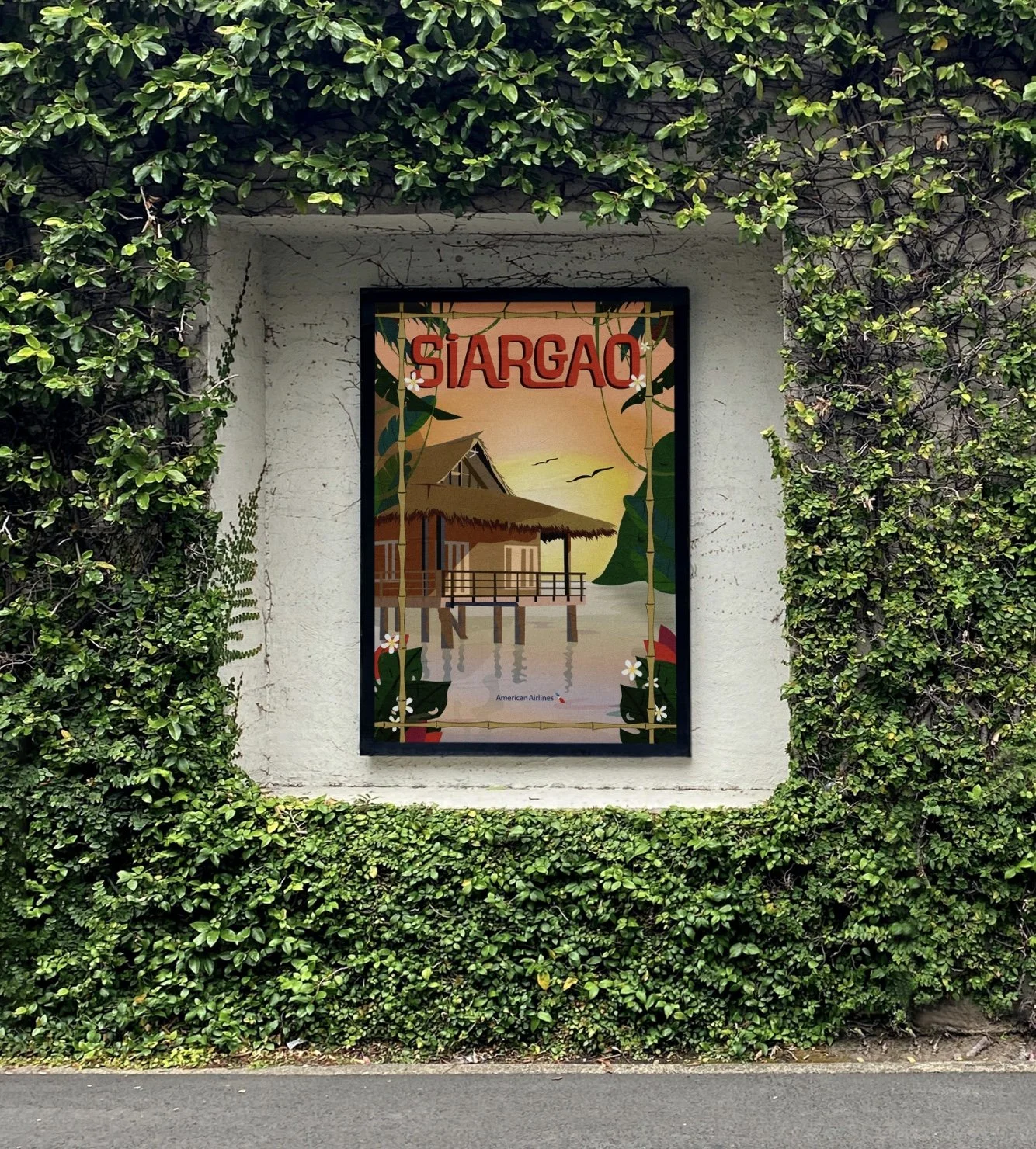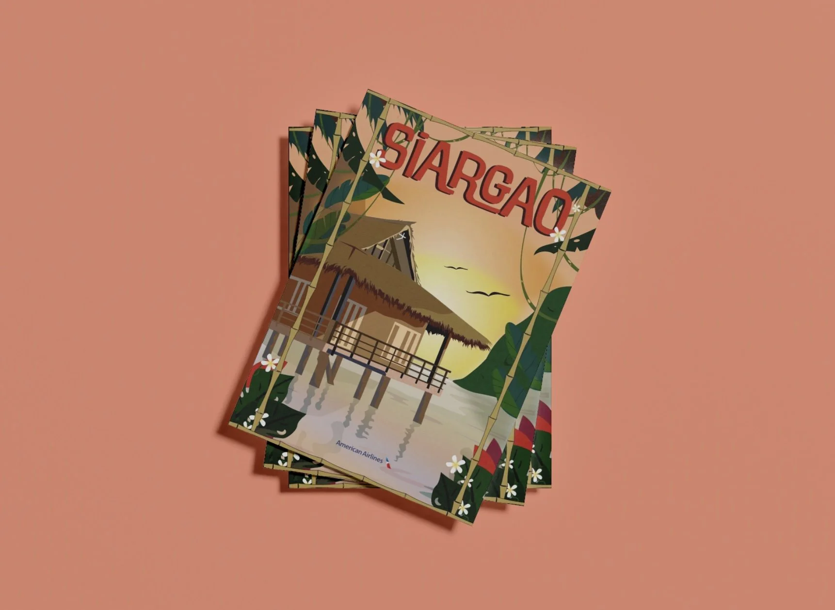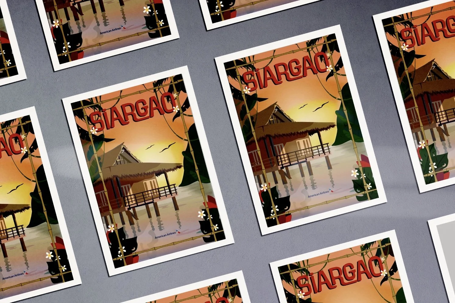 I created a destination poster for American Airlines that captures the spirit and allure of global travel. Drawing inspiration from the Crushiform art style, the design highlights simplified natural forms, bold lighting, and dynamic shadows combined with clean, modern typography to evoke a sense of adventure. Featuring Siargao, Philippines—the renowned “Surfing Capital of the Philippines”—the artwork reflects the island’s perfect harmony of energy and tranquility, showcasing its crystal-clear waters, white sand beaches, and vibrant island culture that inspire exploration and creativity.